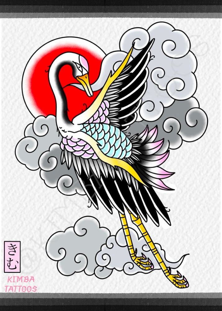Tsuru , a timeless emblem of longevity and good fortune, brought to life in classic Japanese tattoo style. This piece will bring elegance, strength, and meaning to your walls.